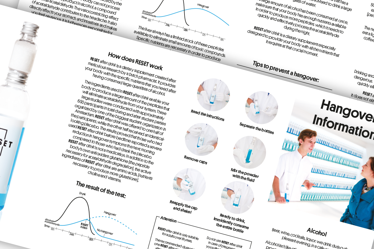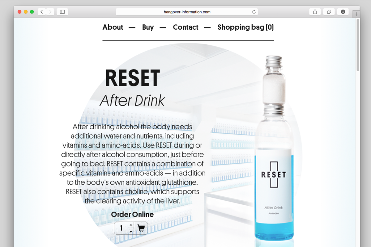 Working together with the architectures of XML, I provided the graphic design for the white vitamin store. The store sold the vitamin supplement Reset, after drink.
